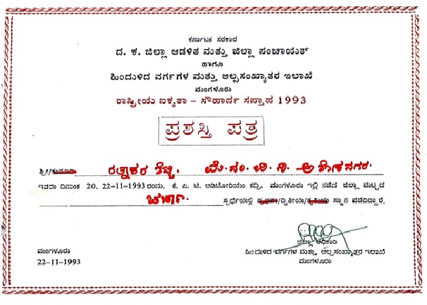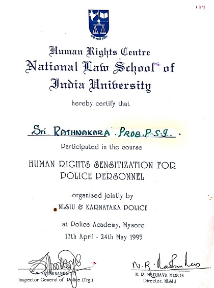 Rathnakara Shetty Sir received notable recognition for his exceptional work in crime detection across Bengaluru districts. He received hundreds of cash rewards and appreciation certificates from the Director General of Police (DGP) Karnataka State, Commissioner of Police, Bengaluru City and other senior police officers for resolving a high volume of criminal cases. He too a recipient of various honors from Karnataka Cabinet Ministers and Noble Laureates. Additionally, he received the Karnataka Chief Minister's Gold Medal and the Kempegowda Award for his leadership and contributions to law enforcement.
